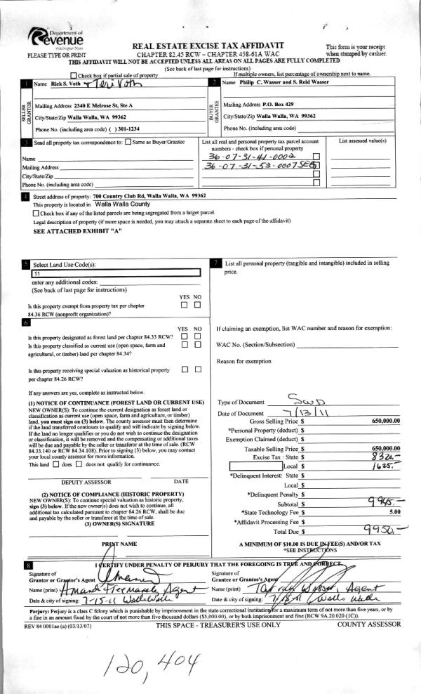 | 3 | 07/15/2011 | WARRANTY D | WARRANTY DEED | WASSER, PHILIP C | VOTH, RICK | | | $200,000.00 | 120405 | 2011-05498 |