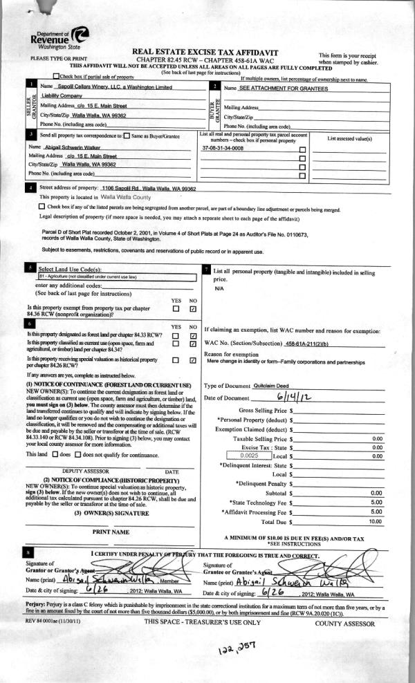| Mailing Address: | 501 WASHINGTON ST UNIT 30 WALLA WALLA, WA 99362 | % Ownership: | 5.0000000000% |