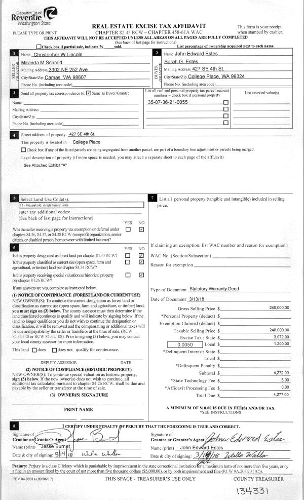 | 1 | 03/16/2018 | SWD | STATUTORY WARRANTY DEED | LINCOLN CHRISTOPHER W | ESTES JOHN EDWARD & SARAH G | | | $240,000.00 | 134331 | 2018-02084 |