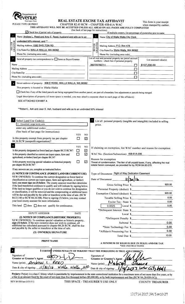 | 1 | 04/14/2025 | BARGAIN & | BARGAIN & SALE DEED | REED ANDREW L & AMY | BOARD OF TRUSTEES OF WHITMAN COLLEGE | | 11-PARCELS | $3,472,000.00 | 149230 | 2025-01982 |