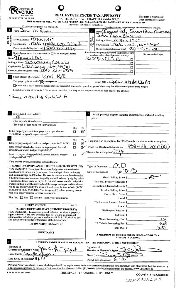 | 3 | 06/12/2015 | QCD | QUIT CLAIM DEED | | ELY MARGARET ROBISON | | | | 128145 | 2015-04948 |