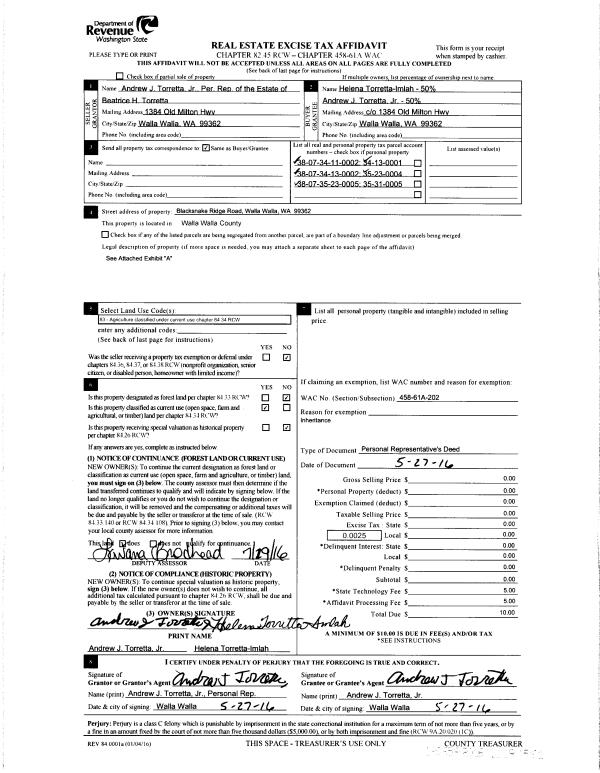 | 3 | 08/01/2016 | DPR | DEED OF PERSONAL REPRESENTATIVE | | TORRETTA ANDREW J JR & HELENA TORRETTA-IMLAH | | | | 130658 | 2016-06066 |