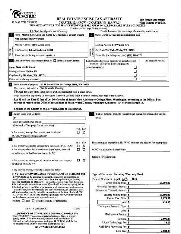 | 1 | 04/30/2014 | SWD | STATUTORY WARRANTY DEED | GRIGALIUNAS KAREN L | VASQUEZ JORGE L | | | $169,900.00 | 125807 | 2014-02935 |