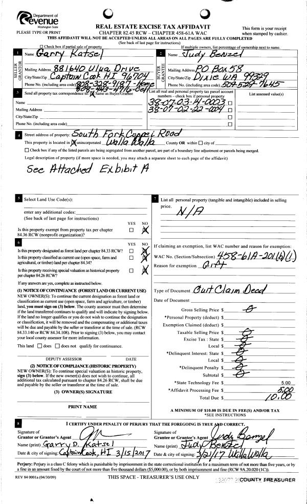 | 2 | 03/21/2017 | QCD | QUIT CLAIM DEED | | PERRY JO ANN AND JUDY BENZEL | | | | 132077 | 2017-02127 |