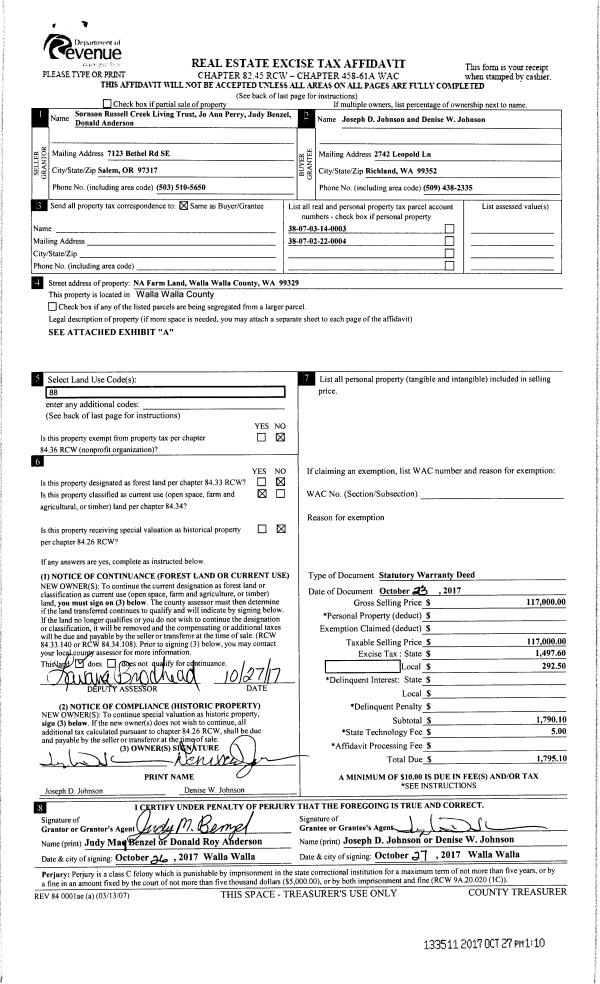 | 1 | 10/27/2017 | WARRANTY D | WARRANTY DEED | | JOHNSON JOSEPH D & DENISE W | | | $117,000.00 | 133511 | 2017-08627 |
