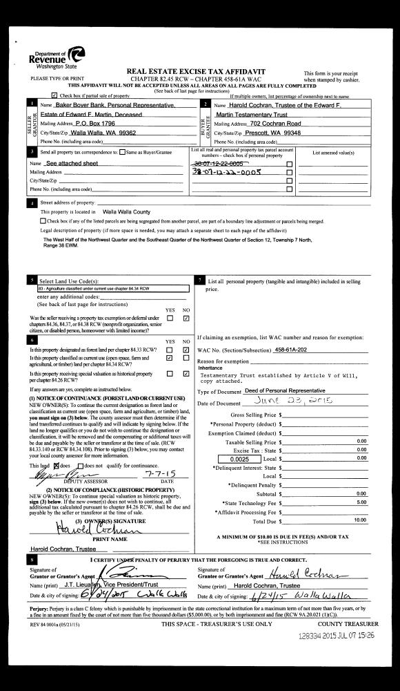 | 4 | 06/24/2021 | DPR | DEED OF PERSONAL REPRESENTATIVE | MARTIN FARMS INC ET AL | MARTIN SHARON ELIZABETH | | | | 0 | 2021-07682 |