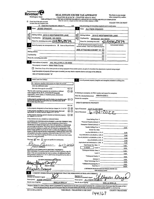 | Mailing Address: | 12626 E HIGHWAY 12 WAITSBURG, WA 99362 | % Ownership: | 50.0000000000% |