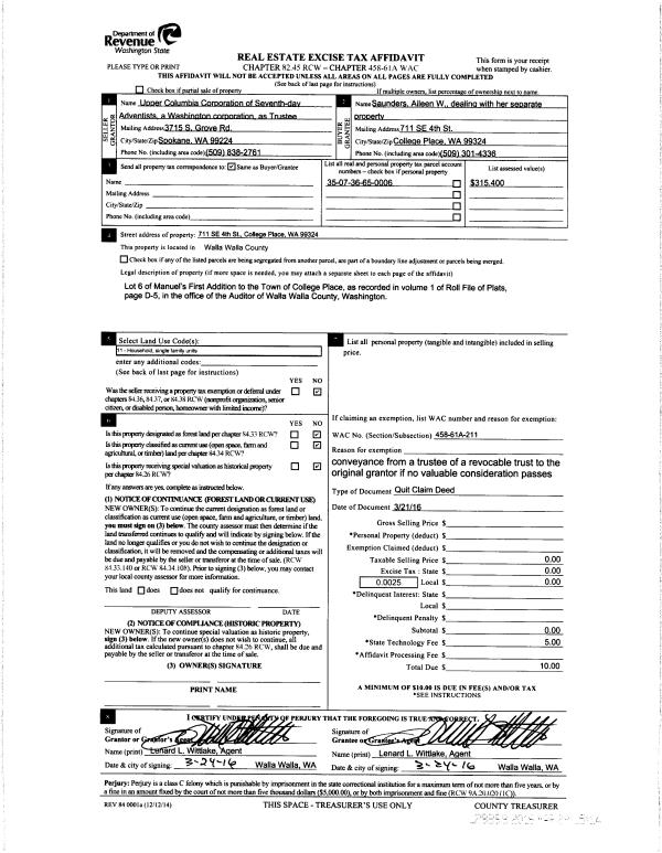 | Mailing Address: | 711 SE 4TH ST COLLEGE PLACE, WA 99324 | % Ownership: | 100.0000000000% |