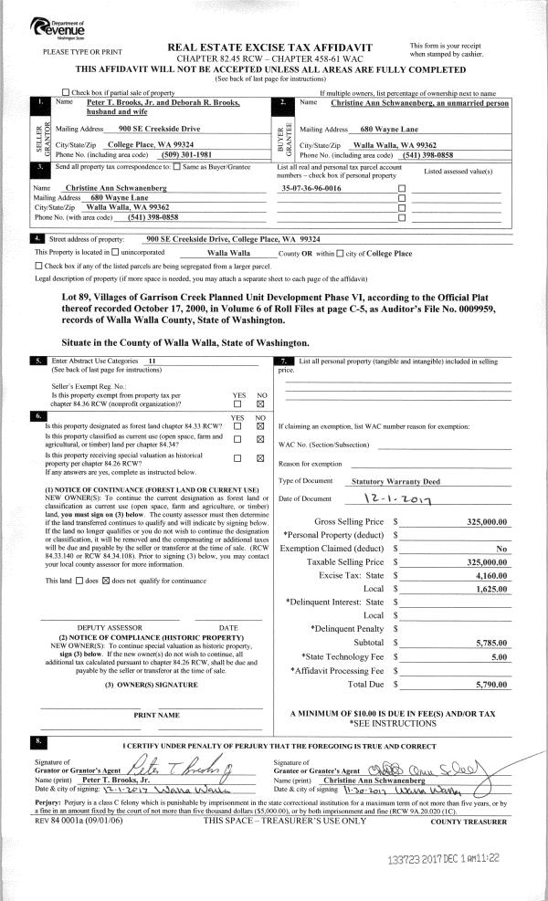 | 2 | 12/01/2017 | SWD | STATUTORY WARRANTY DEED | BROOKS PETER T JR & DEBORAH R | SCHWANENBERG CHRISTINE ANN | | | $325,000.00 | 133723 | 2017-09620 |