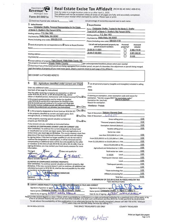 | Mailing Address: | MONTE G SHAFFER TRUSTEE PO BOX 1403 WALLA WALLA, WA 99362 | % Ownership: | 100.0000000000% |