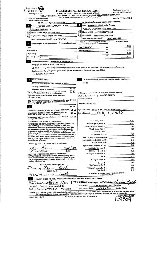 | 3 | 07/20/2020 | DPR | DEED OF PERSONAL REPRESENTATIVE | LYNCH PATRICK A | LYNCH PATRICK A ESTATE OF | | | | 139529 | 2020-06989 |