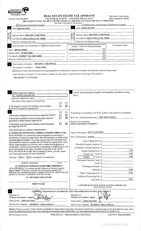 | Mailing Address: | 1640 GRAY LYNN DR WALLA WALLA, WA 99362 | % Ownership: | 100.0000000000% |