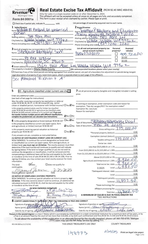 | Mailing Address: | 1325 TWO ACRE LANE WALLA WALLA, WA 99362 | % Ownership: | 100.0000000000% |