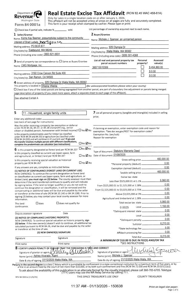 | Mailing Address: | 929 OLYMPIA DR WALLA WALLA, WA 99362 | % Ownership: | 100.0000000000% |