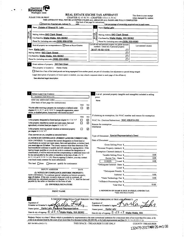| 2 | 05/25/2017 | DPR | DEED OF PERSONAL REPRESENTATIVE | LEHR SHEROD R | LEHR KARLA | | | $0.00 | 132479 | 2017-04020 |