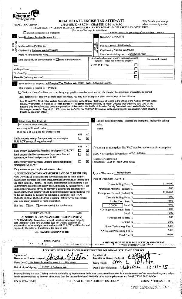 | Property ID: | 5792 | Abbreviated Legal Description: | WALLULA TOWNSITE LOTS 27 & 28 BLK 10 |