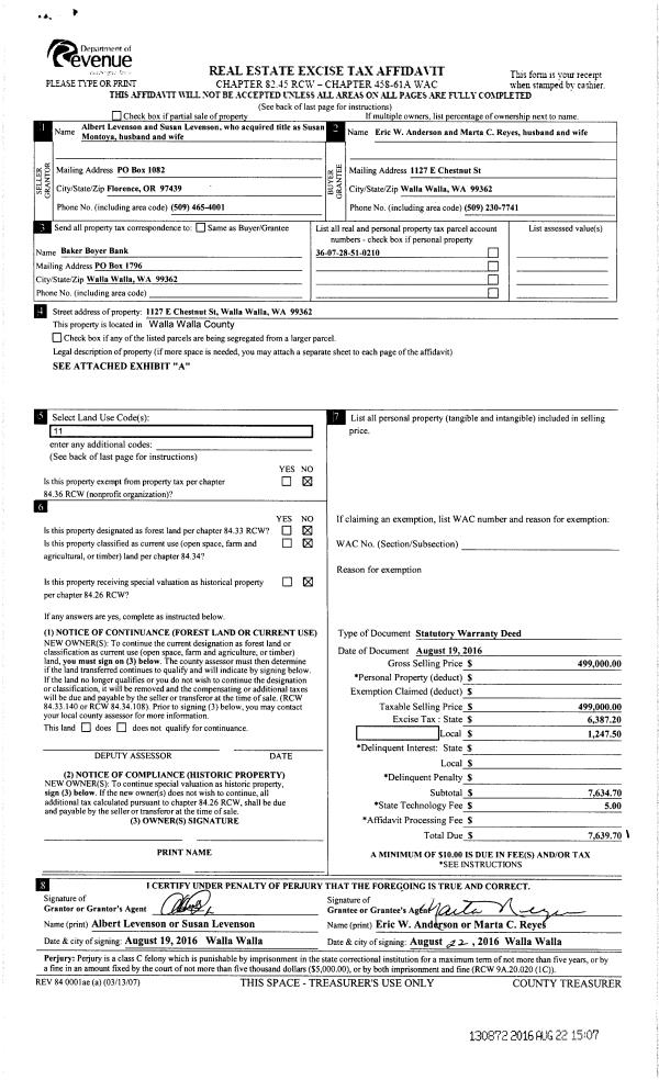 | 3 | 08/22/2016 | SWD | STATUTORY WARRANTY DEED | LEVENSON ALBERT | ANDERSON ERIC W | | | $499,000.00 | 130872 | 2016-06732 |