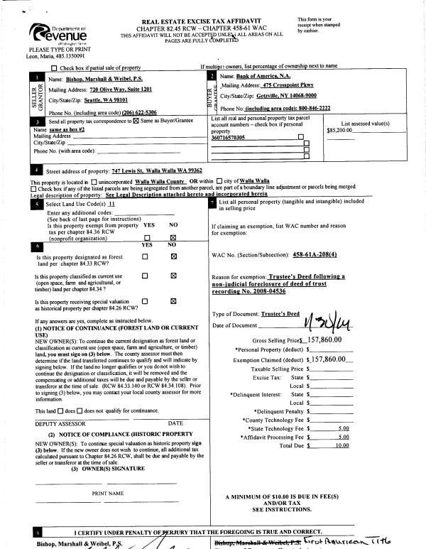 | 3 | 02/03/2014 | TRUSTEES D | TRUSTEE'S DEED | LEON MARIA | BANK OF AMERICA NA | | | $157,860.00 | 125370 | 2014-00851 |