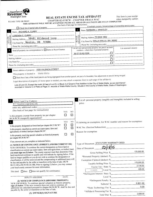 | 3 | 02/23/2015 | SWD | STATUTORY WARRANTY DEED | CURRY RICHARD A & LORENDA C | WHATLEY BARBARA J | | | $170,000.00 | 127467 | 2015-01586 |