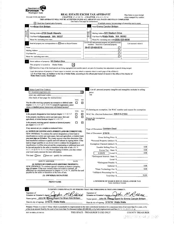 | 4 | 03/16/2016 | QCD | QUIT CLAIM DEED | BRITTAIN BRAIN KIRK | BRITTAIN EMMA CAROLYN | | | $0.00 | 129835 | 2016-01967 |