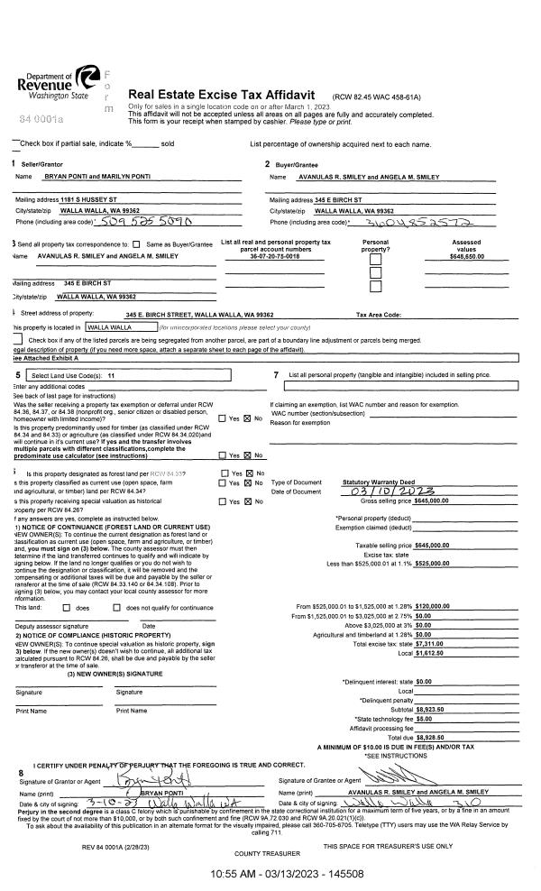 | 1 | 03/13/2023 | SWD | STATUTORY WARRANTY DEED | PONTI BRYAN | SMILEY AVANULAS R & ANGELA M | | | $645,000.00 | 145508 | 2023-01273 |