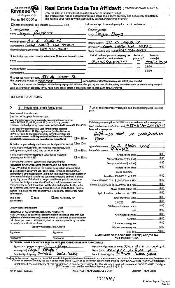 | Mailing Address: | SERGIO POMPA JR 551 E MAPLE ST WALLA WALLA, WA 99362 | % Ownership: | 100.0000000000% |