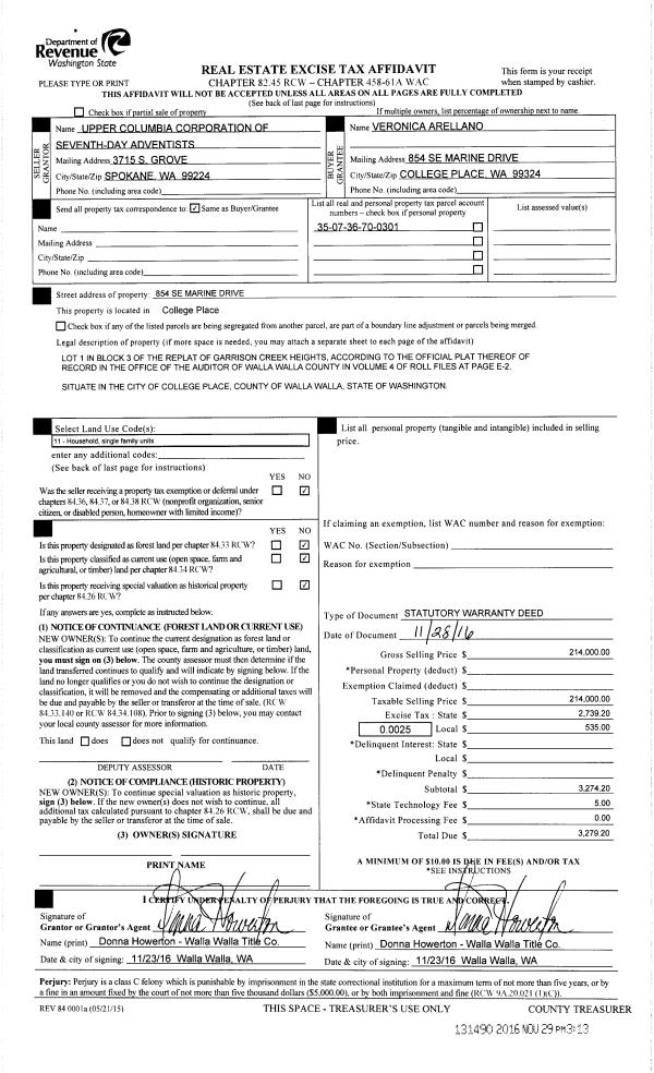 | 5 | 11/29/2016 | SWD | STATUTORY WARRANTY DEED | JONES JOHN V SR LIFE EST UCSDA | ARELLANO VERONICA | | | $214,000.00 | 131490 | 2016-09767 |