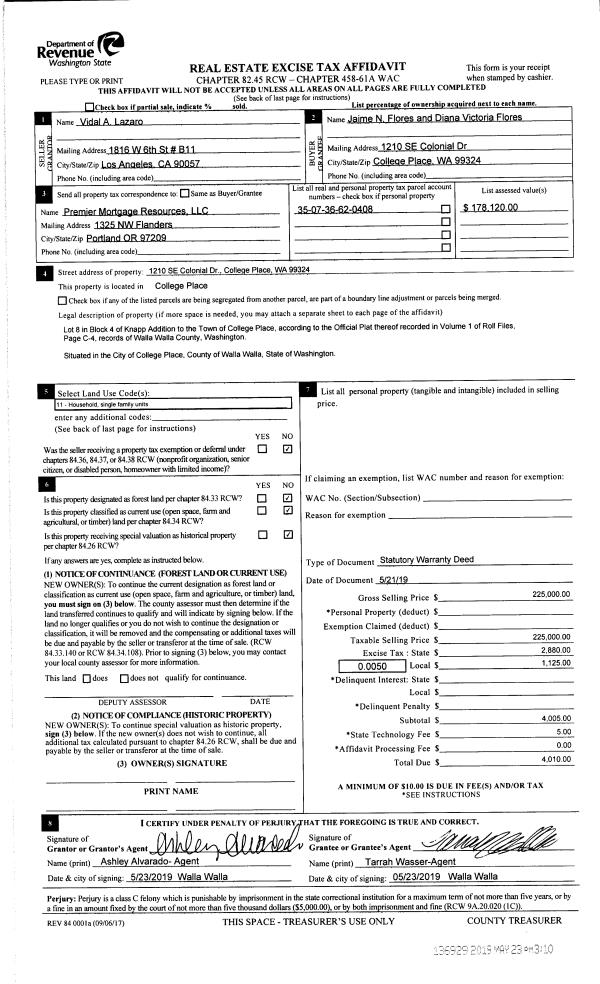 | 1 | 05/23/2019 | SWD | STATUTORY WARRANTY DEED | LAZARO VIDAL A | FLORES JAIME N & DIANA VICTORIA | | | $225,000.00 | 136929 | 2019-03484 |