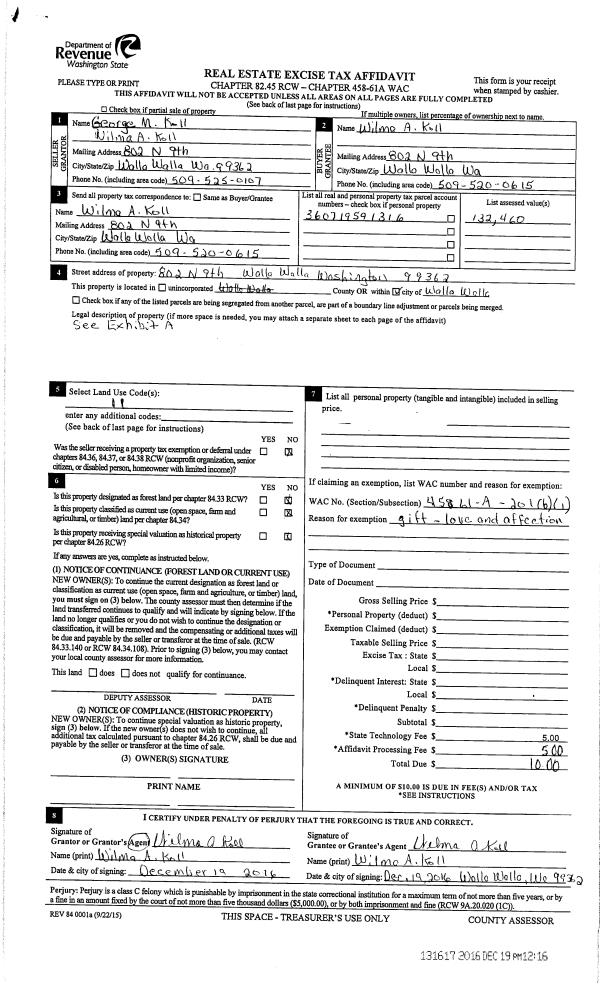 | 2 | 12/19/2016 | QCD | QUIT CLAIM DEED | KOLL GEORGE & WILMA | KOLL WILMA A | | | $0.00 | 131617 | 2016-10402 |