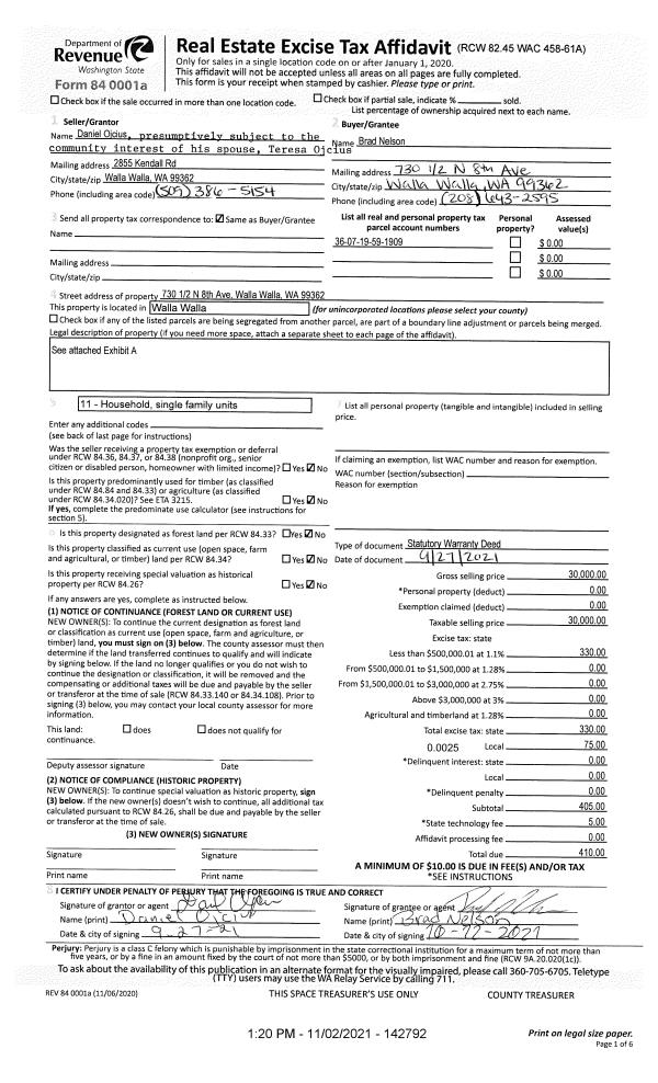 | 2 | 11/02/2021 | SWD | STATUTORY WARRANTY DEED | OJCIUS DANIEL | NELSON BRAD | | | $30,000.00 | 142792 | 2021-13173 |