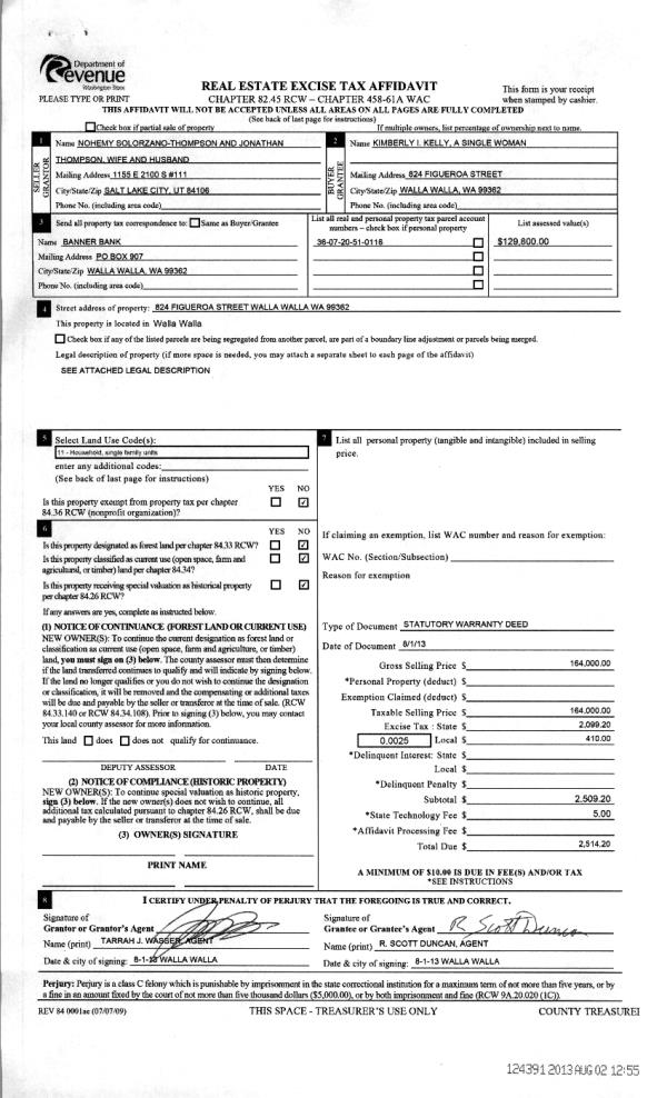 | 3 | 08/02/2013 | WARRANTY D | WARRANTY DEED | THOMPSON, JONATHAN | KELLY, KIMBERLY I | | | $164,000.00 | 124391 | 2013-07867 |
