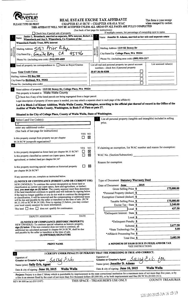 | 3 | 06/16/2015 | SWD | STATUTORY WARRANTY DEED | BRUMBACH JANICE L | ADAMS JENNIFER D | | | $175,000.00 | 128180 | 2015-05057 |