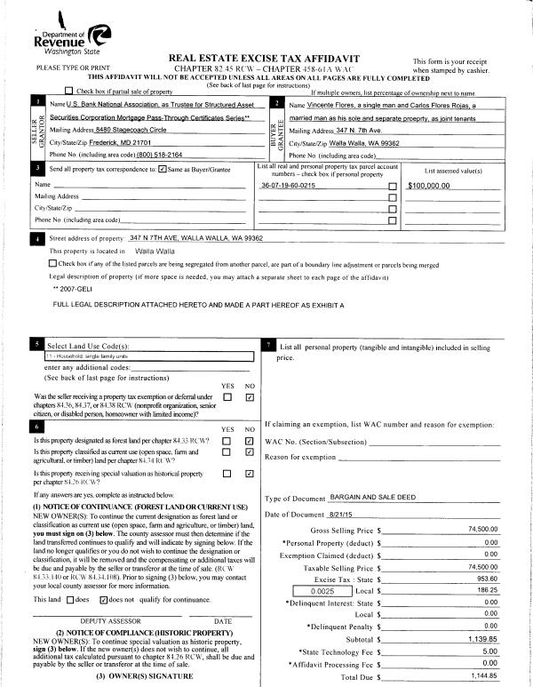 | 2 | 08/28/2015 | SWD | STATUTORY WARRANTY DEED | US BANK NATIONAL ASSOCIATION | FLORES VINCENTE | | | $74,500.00 | 128745 | 2015-07736 |