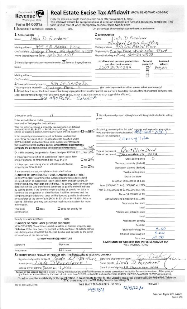 | Mailing Address: | 934 SE SENTRY DR COLLEGE PLACE, WA 99324 | % Ownership: | 100.0000000000% |
