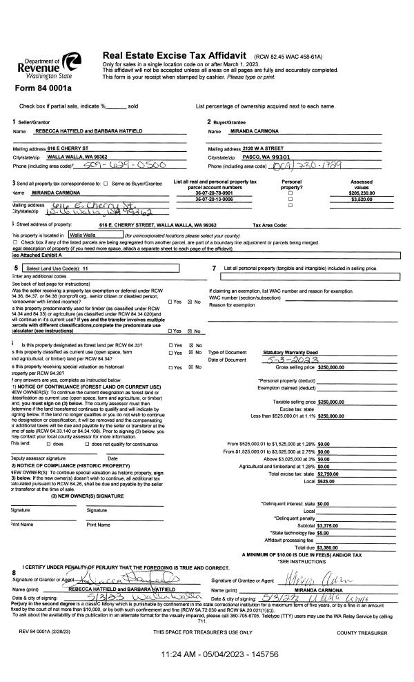 | Mailing Address: | 616 E CHERRY ST WALLA WALLA, WA 99362 | % Ownership: | 100.0000000000% |