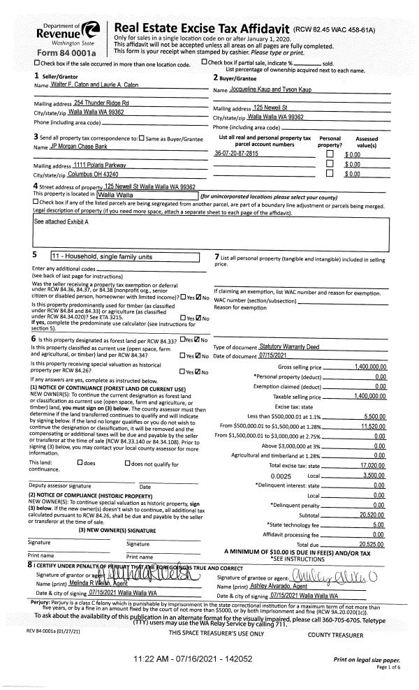 | 1 | 07/16/2021 | SWD | STATUTORY WARRANTY DEED | CATON WALTER F & LAURIE A | KAUP JOCQUELINE & TYSON | | | $1,400,000.00 | 142052 | 2021-08662 |