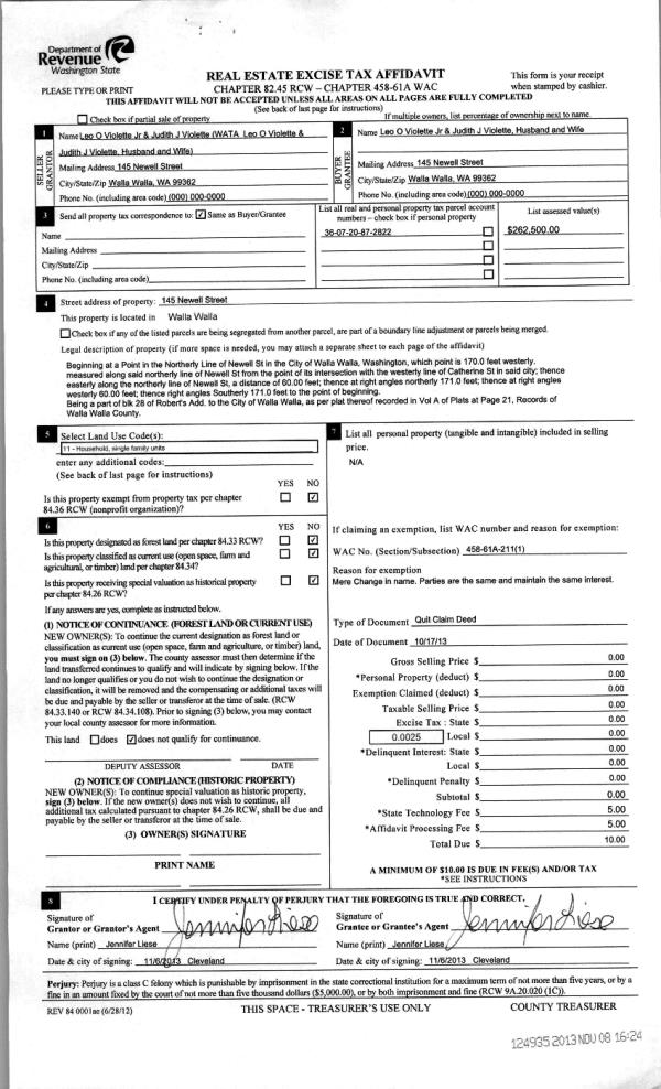 | 3 | 11/19/2013 | WARRANTY D | WARRANTY DEED | VIOLETTE, LEO O & JUDITH J | VIOLETTE, LEO O JR & JUDITH J | | | $0.00 | 124935 | 2013-11353 |