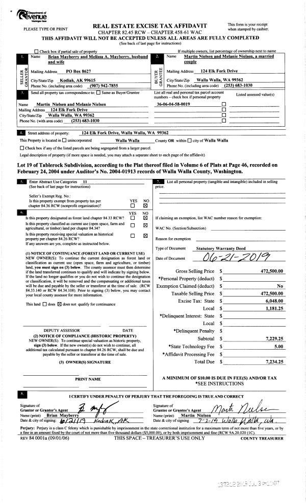 | 2 | 07/03/2019 | SWD | STATUTORY WARRANTY DEED | MAYBERRY BRIAN | NIELSEN MARTIN & MELANIE | | | $472,500.00 | 137212 | 2019-04767 |