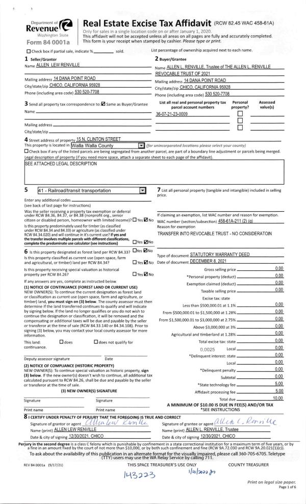 | 1 | 12/08/2021 | SWD | STATUTORY WARRANTY DEED | RENVILLE ALLEN LEW | ALLEN L RENVILLE REVOCABLE TRUST | | | $0.00 | 143223 | 2022-00321 |