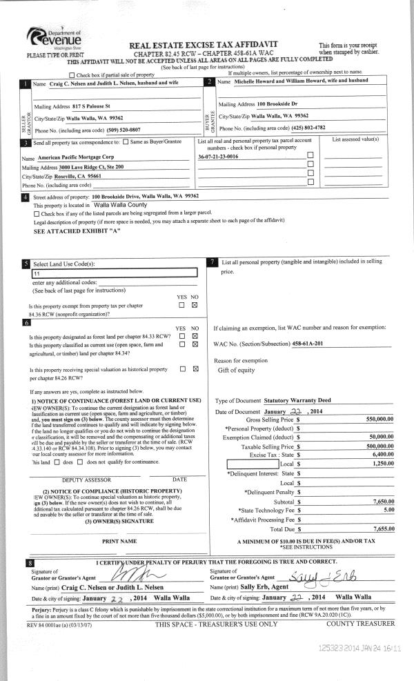 | 1 | 01/24/2014 | WARRANTY D | WARRANTY DEED | NELSEN CRAIG C & JUDITH L | HOWARD WILLIAM & MICHELLE | | | $550,000.00 | 125323 | 2014-00599 |