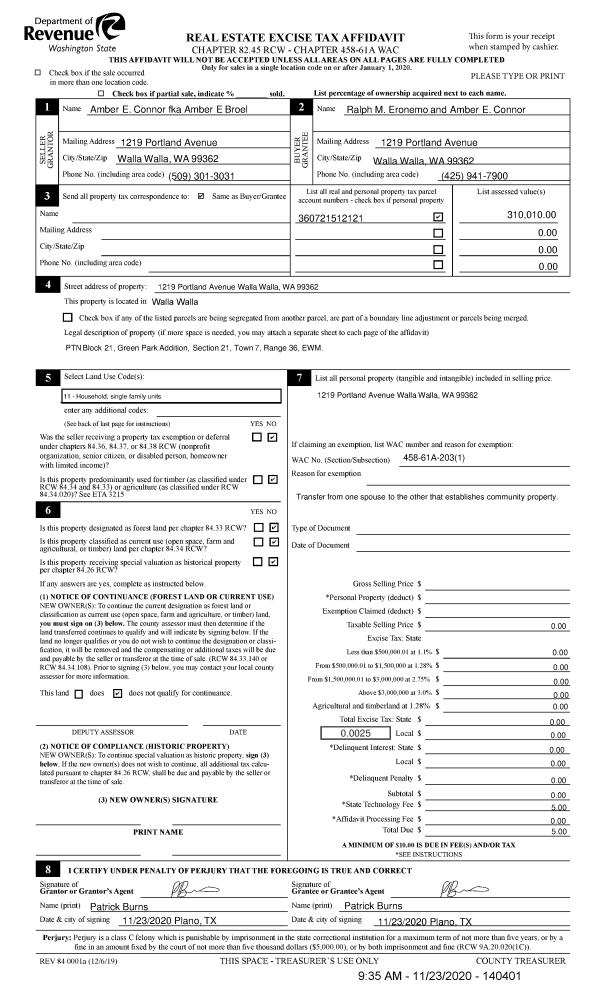 | Mailing Address: | 1219 PORTLAND AVE WALLA WALLA, WA 99362 | % Ownership: | 100.0000000000% |