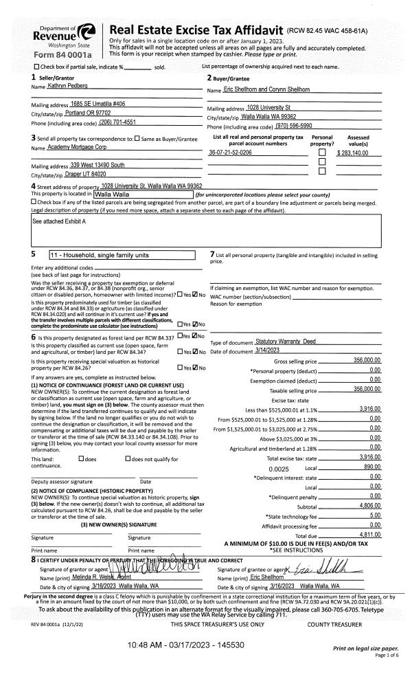 | Mailing Address: | 1028 UNIVERSITY ST WALLA WALLA, WA 99362 | % Ownership: | 100.0000000000% |