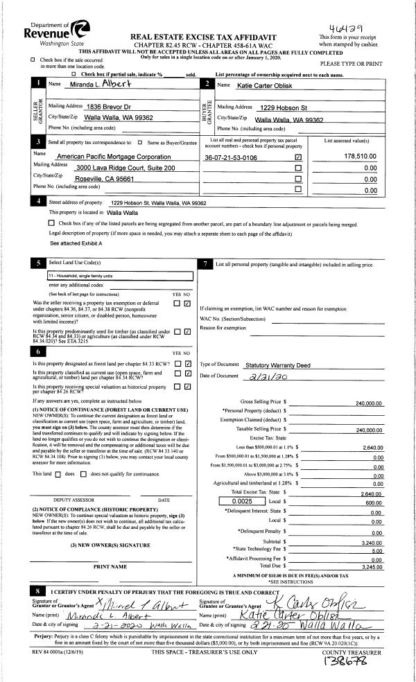 | Address: | 1229 HOBSON ST WA 99362 | Mapsco: | |