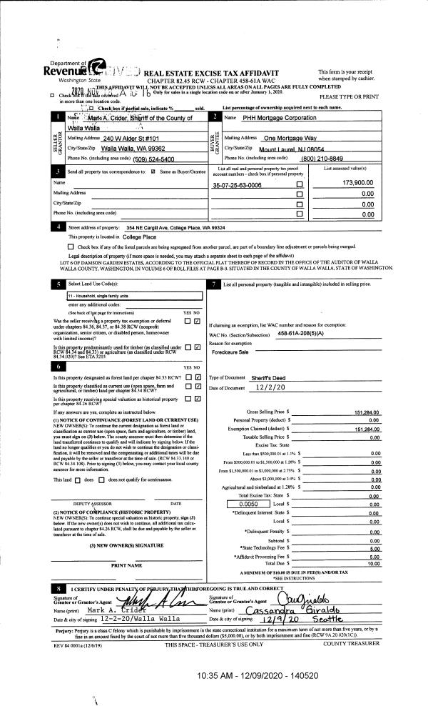 | 2 | 12/09/2020 | SHERIFFS D | SHERIFFS DEED | AFFORDABLE DESIGN HOMES LLC | PHH MORTGAGE CORPORATION | | | | 140520 | 2020-13025 |