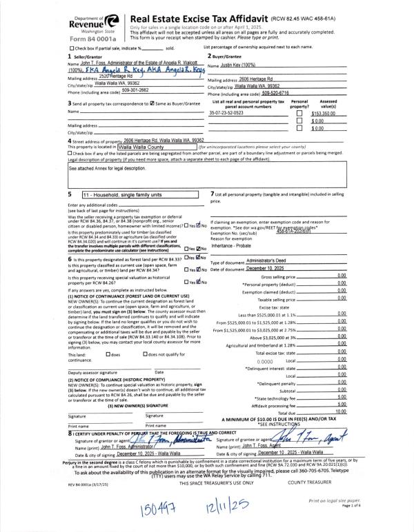 | Mailing Address: | 2606 HERITAGE RD WALLA WALLA, WA 99362 | % Ownership: | 100.0000000000% |