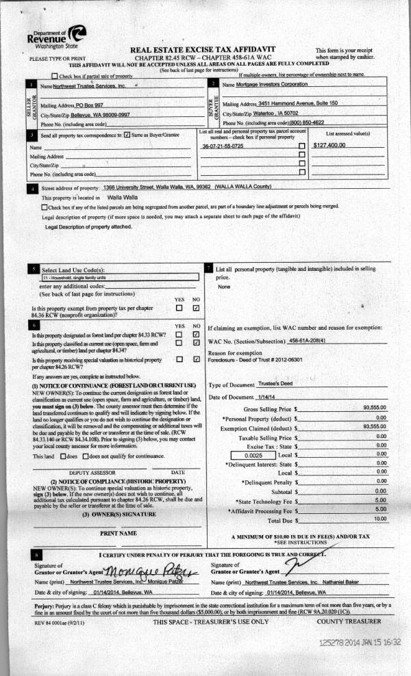 | 5 | 01/15/2014 | TRUSTEES D | TRUSTEE'S DEED | AICHELE DANIEL J & CONNIE J | MORTGAGE INVESTORS CORPORATION | | | $93,555.00 | 125278 | 2014-00345 |