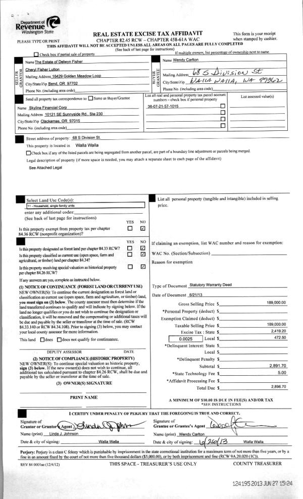 | 3 | 06/27/2013 | WARRANTY D | WARRANTY DEED | FISHER, DELWYN ESTATE OF | CARLTON, WENDY | | | $189,000.00 | 124195 | 2013-06468 |