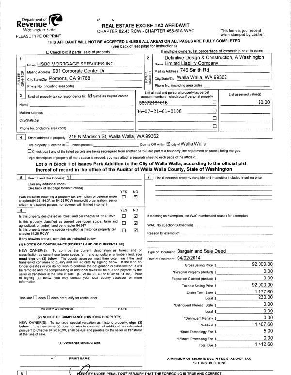 | 3 | 04/09/2014 | BARGAIN & | BARGAIN & SALE DEED | HSBC MORTGAGE SERVICES INC | DEFINITIVE DESIGN & CONSTRUCTION LLC | | | $92,000.00 | 125693 | 2014-02400 |