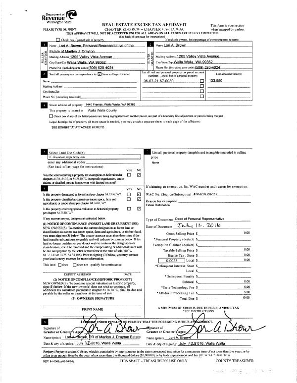 | 2 | 07/12/2016 | DPR | DEED OF PERSONAL REPRESENTATIVE | DRAYTON MARILYN J | BROWN LORI A | | | $0.00 | 130610 | 2016-05446 |