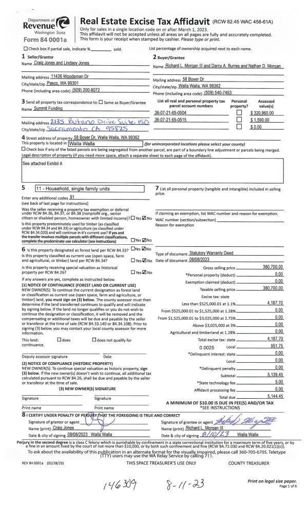 | Mailing Address: | NATHAN D MORGAN 58 BOYER DR WALLA WALLA, WA 99362 | % Ownership: | 100.0000000000% |